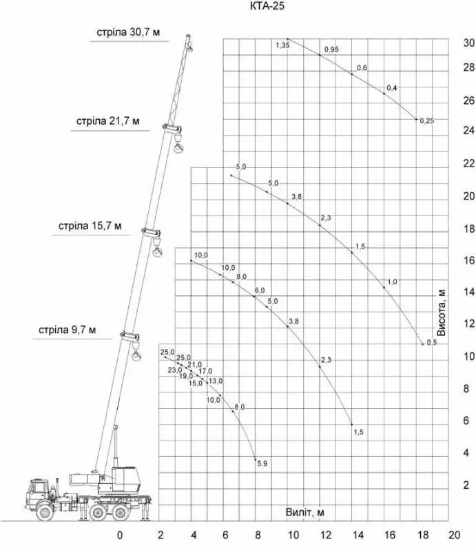 Длина стрелы, м/с удлинителем, м 9,7-21,7/30,7