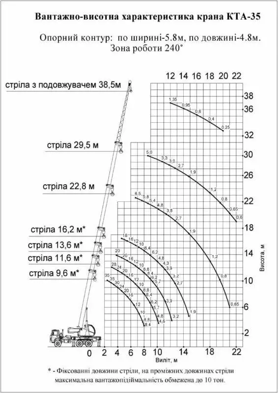 Длина стрелы, м/с удлинителем, м 9,7-29,5/38,5